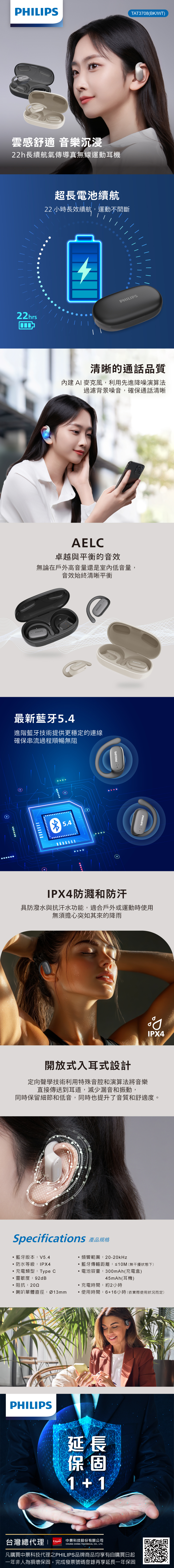 開放式耳掛設計,配戴更舒適自適應等響度補償(AELC)演算法,能清晰均衡音效